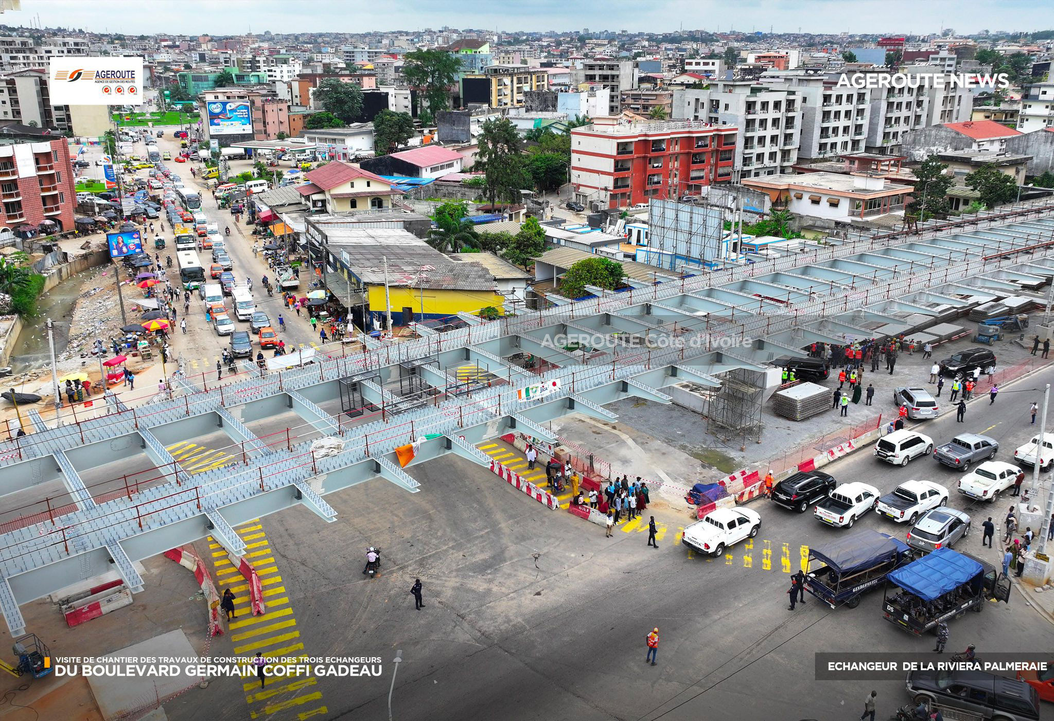 La visite avait débuté sur le site de l’École de Police, où le taux d’exécution global est estimé à 60,94 % avec un linéaire de 170 m en 2x3 voies, comprend la construction d’un pont à tablier bi-caisson mixte acier-béton continu. Le projet approche sa dernière phase opérationnelle à savoir la mise en place du tablier avec la pose des dalles préfabriquées avant d'aboutir au bitume. La visite s’est poursuivie aux carrefour de la Riviera 3 et de la Riviera Palmeraie. Les travaux de la Riviera 3 comprend un pont à tablier bi-caisson mixte acier-béton continu d'un linéaire de 221 m répartis en cinq travées et 2x3 voies. Celui de la Riviera Palmeraie porte sur un ouvrage d'un linéaire 266 mètres en six travées et 2x3 voies.